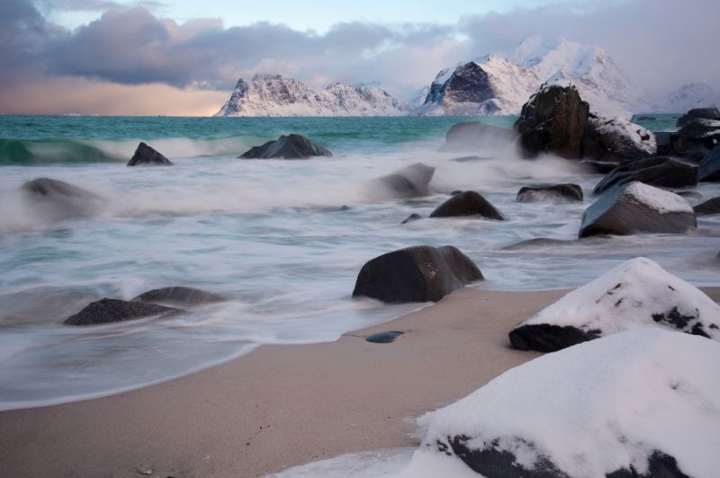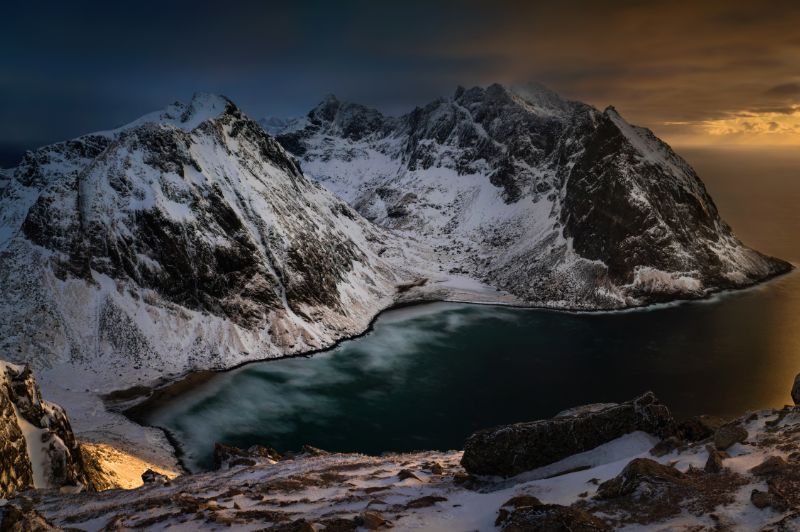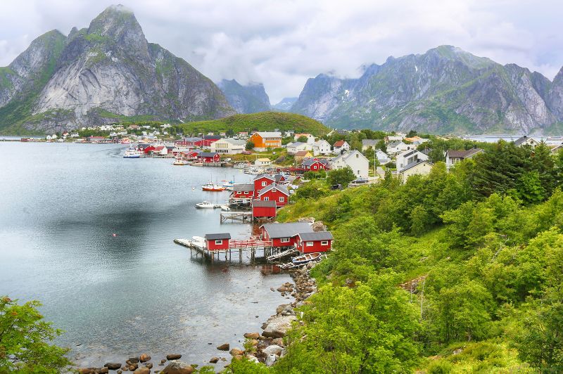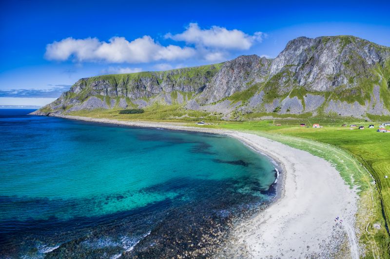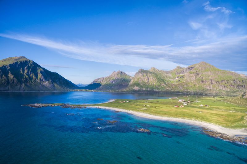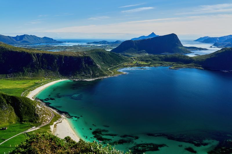 A Lofoten-szigetek a sarkvidéki tájak esszenciáját kínálják. Az éles, sziklás hegycsúcsok, amelyek meredeken emelkednek ki a Norvég-tengerből, drámai kontrasztban állnak a kristálytiszta, smaragdzöld vízű fjordokkal. A körutazás során olyan helyszíneket fedezhetünk fel, mint Reine, ahol a tradicionális vörös rorbu halászkunyhók tükröződnek vissza a víz felszínén, vagy Haukland Beach, amelynek fehér homokja és türkizkék színe trópusi hangulatot kölcsönöznek a sarkvidéki tájnak. Nyáron az éjféli nap ragyogása, télen a sarki fény teszi a Lofotent a világ egyik legkülönlegesebb úti céljává.