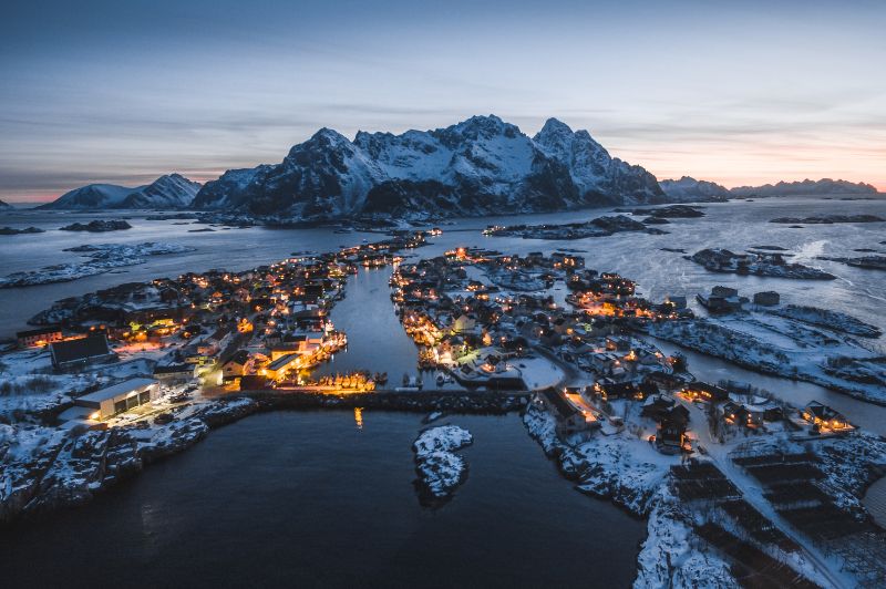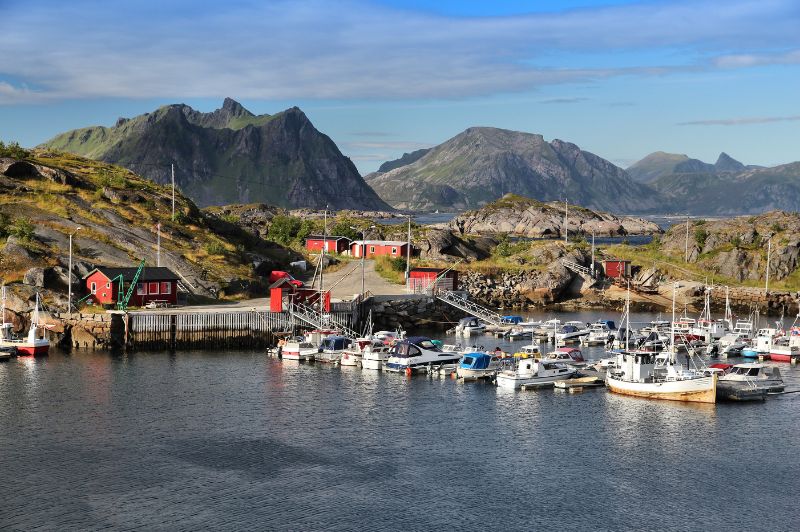 Gravdal, Ballstad és Mortsund a Lofoten-szigetek jellegzetes halászfalvai, ahol a vörös rorbu házak a fjordparton sorakoznak a meredek hegyek árnyékában. Ballstad az egyik legnagyobb halfeldolgozó központ, nyüzsgő kikötővel és élő tengeri kultúrával. A nyugodtabb Gravdal és Mortsund csendes öblei kajakos kirándulásokhoz és fotózáshoz ideálisak. A falvakból látványos túraösvények indulnak, a part mentén pedig a száradó tőkehal-állványok idézik meg több száz éves halászhagyományt. Ez a vidék hiteles bepillantást enged a Lofoten mindennapjaiba, ahol a természet és az ember harmóniában él együtt.